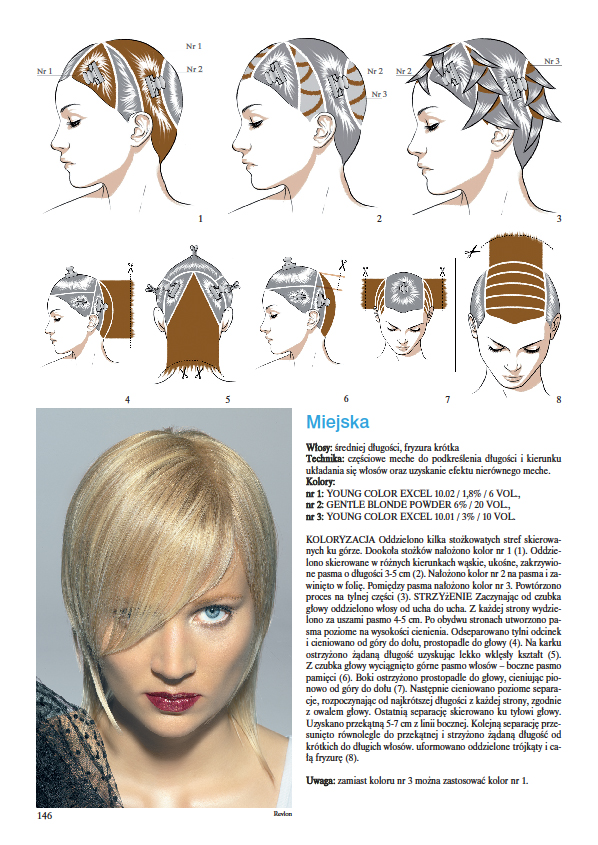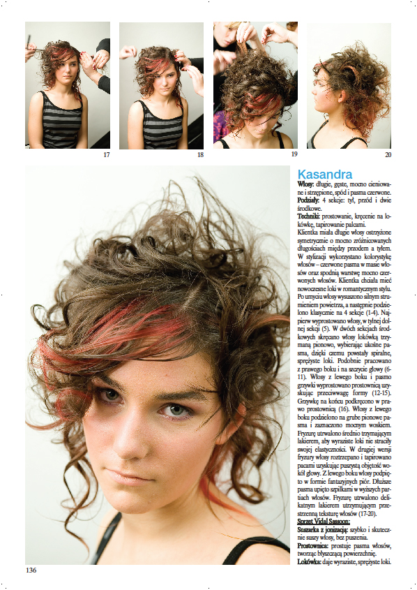 • damskie fryzury krok-po-kroku (praca stylistów/ instruktorów, opisy pracy)
