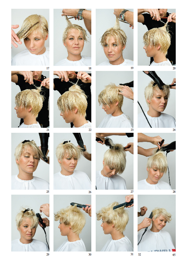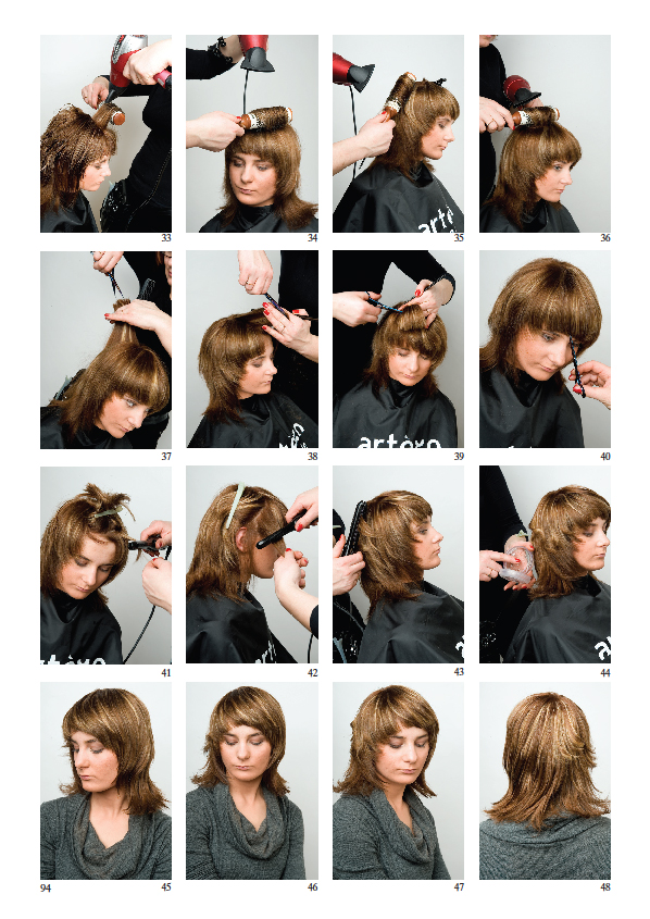 POKAZUJE TECHNIKI PRACY FRYZJERA we fryzjerstwie damskim w 25 fryzurach