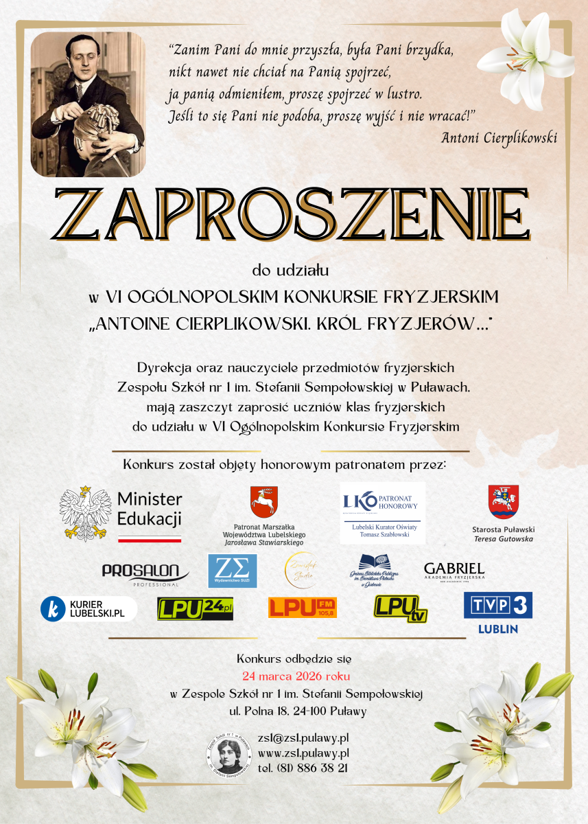 VI OGÓLNOPOLSKI KONKURS FRYZJERSKI w Puławach, w Zespole Szkół nr 1 im. Stefanii Sempołowskiej