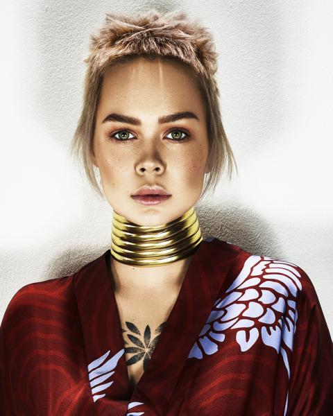 Kolekcja prezentuje projekty, gdzie inspiracją są moda etniczna i klasyka. Tak, jak te kobiety, którym poświęcona jest kolekcja - stylistka odkrywa na nowo tradycyjne i klasyczne formy. Nasyca je nowoczesnością. Łączy kolory etniczne z barwami włosów i dopasowuje styl fryzur do ubiorów. (dop. red. SUZI, nauka o stylach, do wykorzystania w kwalifikacji FRK.03 - Projektowanie i wizualizacja fryzur)