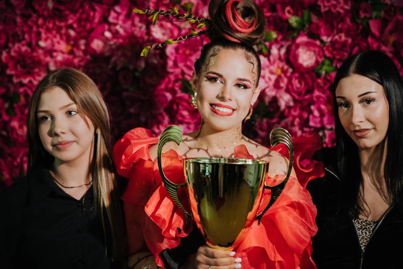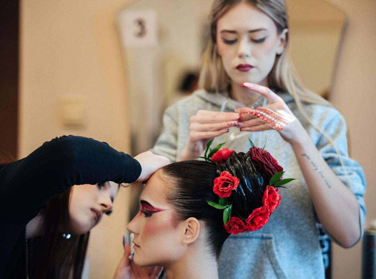 Uczennice z Technikum ZDZ w Warszawie, Centrum Kształcenia w Płocku : Nikola Kipich i Dorota Woźniak pokazały stylizację, w której połączyły fryzjerstwo z emocją i symbolika natury. W stylizacji „Czerwień emocji”, kolor czerwony odegrał ważną rolę gdyż symbolizuje życie, emocje i wewnętrzny ogień, który napędza kreatywność młodej fryzjerki.