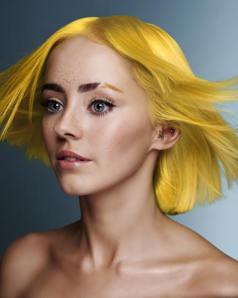 S. Burton, Safy B's, Aylesbury, fot. D. Greensmith, SUZI, FRK.03, kontrast symultaniczny, żółty, projektowanie fryzur