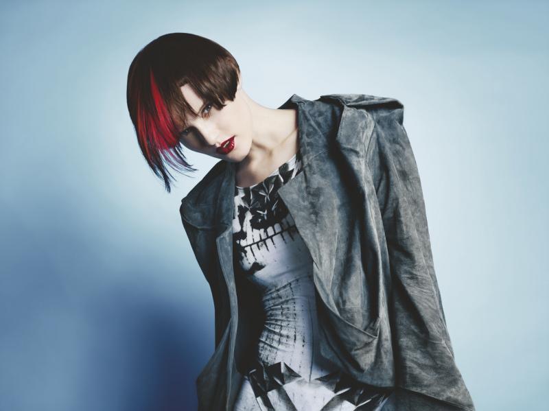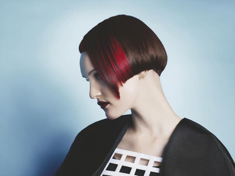Mocne linie i kształty tworzą trójwymiarową rzeczywistość. Kontur fryzury w połączeniu z grzywką stanowią naturalną ramę dla twarzy. Formę przełamuje kaskadowa linia boczna.