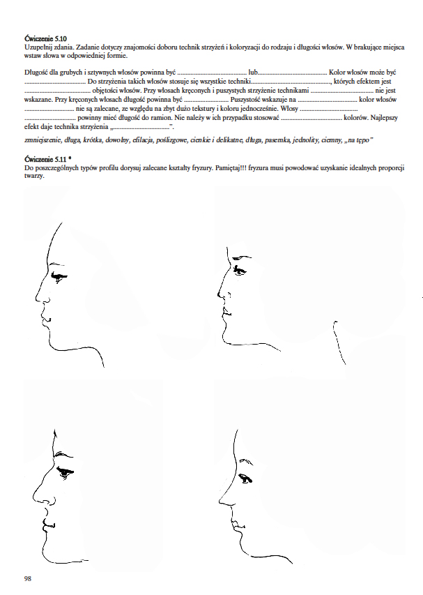 TECHNOLOGIA FRYZJERSTWA/ STYLIZACJA - zeszyt ćwiczeń, FRK.01, FRK.02, FRK.03, testy i egzaminy fryzjerskie, Sumirska, profil twarzy