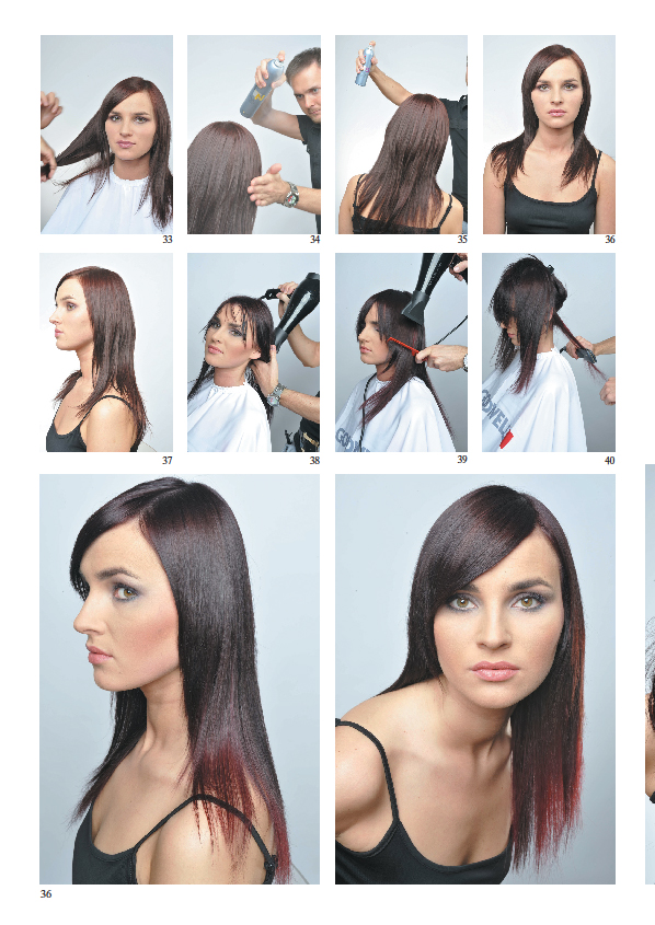 • damskie fryzury krok-po-kroku (praca stylistów/ instruktorów, opisy pracy)