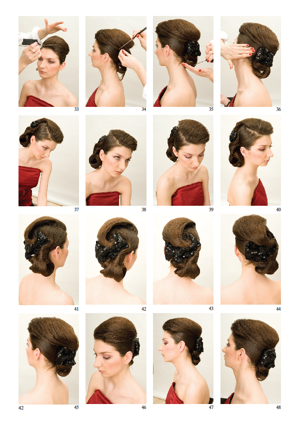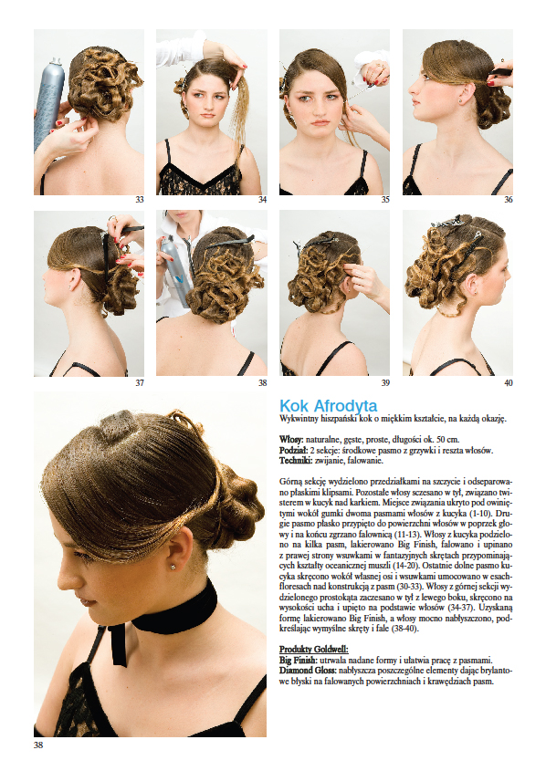 • fryzury krok-po-kroku (praca stylistów/ instruktorów, opisy wykonywania upięć i koków)