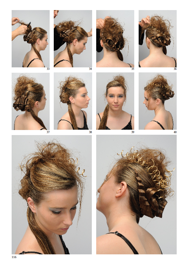 • szczegółowa praca z włosami – podział włosów, przygotowanie, kręcenie, nawijanie, modelowanie, upinanie, formowanie, plecenie, dekorowanie