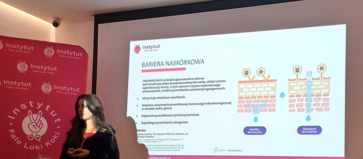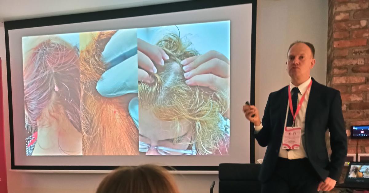 Wprowadzenie do trychologii – przedstawiła Alicja Gondek-Urtnowska, prezes Polskiego Stowarzyszenia Trychologicznego, pierwszy w Polsce biegły sądowy z dziedziny trychologii, wykładowca i autor publikacji. Omówiła mechanizmy wzrostu i wypadania włosów oraz różnicowanie łysień, gdzie samo rozpoznanie polega na przeprowadzeniu wywiadu, określeniu miejsca i rodzaju łysienia oraz czasu trwania problemu w kontekście wieku klienta. Konsultacja pozwala stwierdzić jakie podłoże ma łysienie – wynika z zaburzeń hormonalnych, zaburzeń pracy narządu wewnętrznego, przebytej choroby, stresu czy niedoborów żywieniowych.