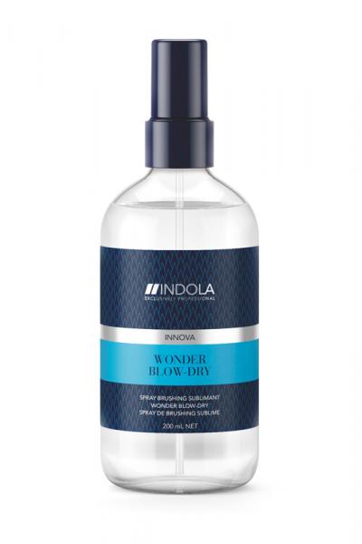 Formuła Indola Wonder Blow-Dry sprawia, że suszenia włosów jest do 30% krótsze. Dodatkowo kosmetyk nie tylko delikatnie utrwala, ale również chroni włosy przed niekorzystnym wpływem wysokiej temperatury. Spray wygładza poszczególne pasma włosów, nawilża je i zapobiega puszeniu się. W efekcie włosy łatwo się rozczesują, stają się miękkie i błyszczące. Wystarczy spryskać sprayem wilgotne włosy i stylizować jak zawsze.