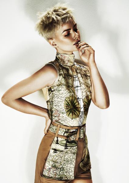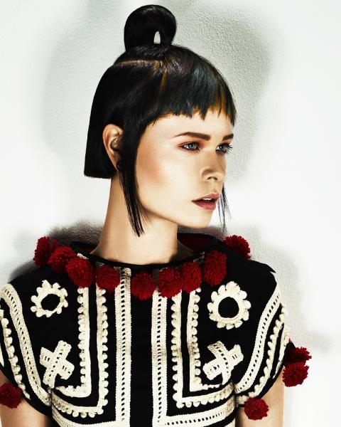 Kolekcja prezentuje projekty, gdzie inspiracją są moda etniczna i klasyka. Tak, jak te kobiety, którym poświęcona jest kolekcja - stylistka odkrywa na nowo tradycyjne i klasyczne formy. Nasyca je nowoczesnością. Łączy kolory etniczne z barwami włosów i dopasowuje styl fryzur do ubiorów. (dop. red. SUZI, nauka o stylach, do wykorzystania w kwalifikacji FRK.03 - Projektowanie i wizualizacja fryzur)