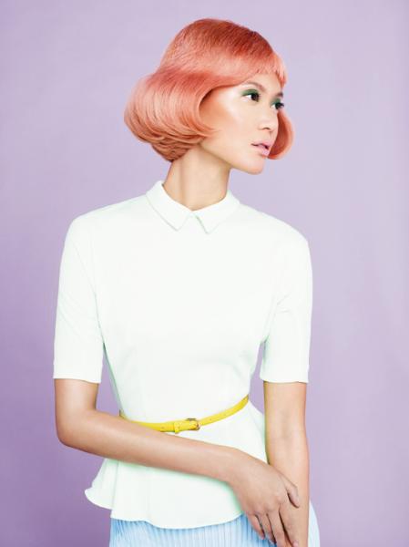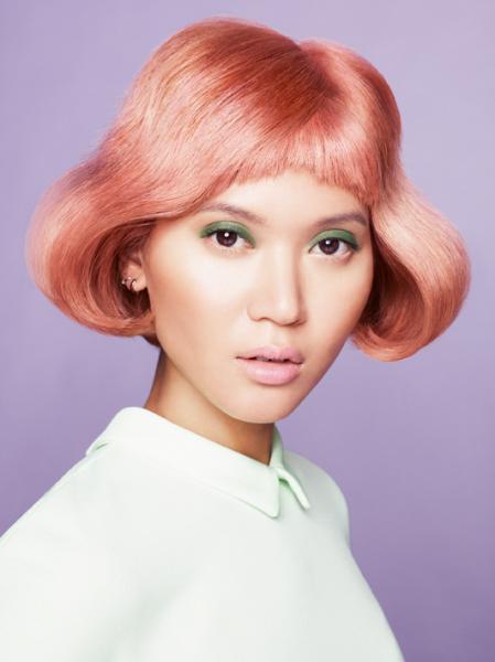 jest zaokrąglona grzywka, która nadaje charakter zarówno krótkim i prostym fryzurom, jak i stylizacjom z dłuższych włosów. Sposobem na maksymalne podkreślenie wyjątkowego charakteru Candy Dandy było wykorzystanie koloru - delikatnych przydymionych odcieni szarości, moreli i jasnego blondu.