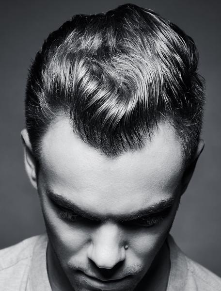Soft Crop to wspaniała męska klasyka w nowoczesnym wydaniu, która czerpie wzorce z lat 50’, 60’ i 70’. Krótkie strzyżenia z dłuższymi grzywkami stylizowanymi centralnie do tyłu lub lekko w bok, z mocno podkręcanymi końcami albo ułożone w nieregularne fale niczym u filmowych amantów. Wyraźnie zaznaczona tekstura pozwala przyjrzeć się w jaki sposób zostały ostrzyżone i ułożone włosy. Na ogół bez wyznaczania przedziałków - włosy z niższych partii zaczesane w kierunku przedziałka zakrywają miejsce podziału tworząc jedną powierzchnię. (dop. red. Zuzanna Sumirska, stylizacja męskich fryzur, FRK.01, FRK.03)