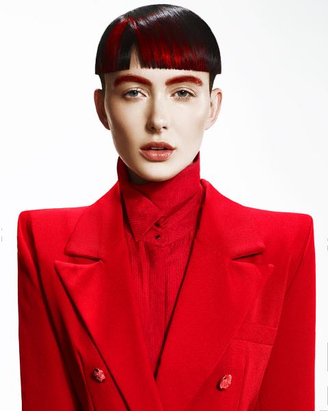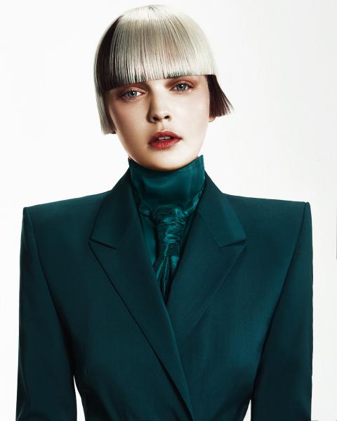 W kolekcji Kroma klasyka i awangarda są zrównoważone, a barwy kolekcji w zestawieniu z mocnymi graficznymi formami, stanowią przykład zindywidualizowania koloru. Tutaj kolor warunkuje styl. Każdy projekt jest dobrany do typu kobiecej urody. Każdy ma własny charakter i swoją temperaturę, co podkreślają linie strzyżenia. Proste, wklęsłe, wypukłe, zbieżne czy zygzakowate. Stylizacja to kompozycja koloru i kształtu, jest wizualizacją zamysłu projektanta, który chce coś przekazać. (dop. red. abcfryzjera.pl, SUZI, FRK.03)