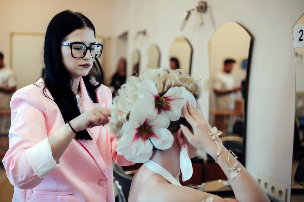 „Szept natury” – to kobieca stylizacja podkreślająca naturalność i delikatność, we włosach modelki zakwitły kwiaty, które przypominają o wolności i wrażliwości. Tę opowieść o kobiecości stworzyła Kamila Krasuska, uczennica Niepublicznego Technikum Zawodowego ZDZ Siedlce.