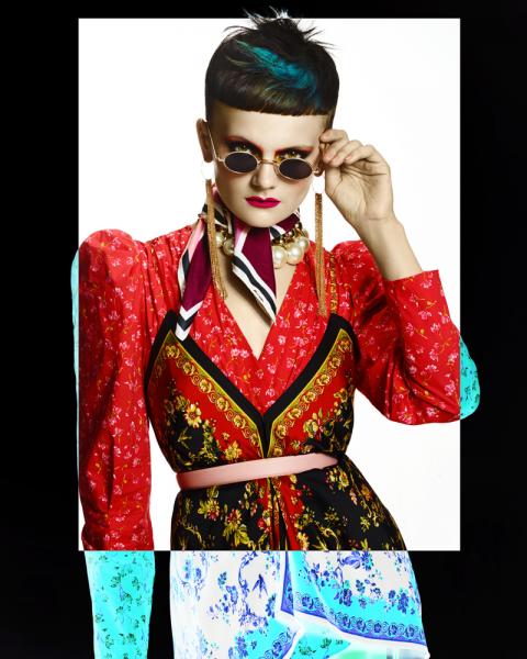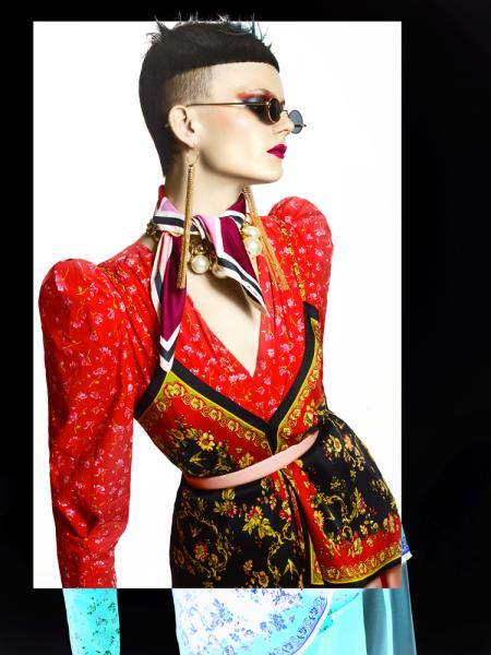 Najnowsza kolekcja Shogo Ideguchi została zainspirowana wyobrażeniami współczesnej sztucznej inteligencji - modeli wystylizowanych na lata pięćdziesiąte. Czyste, wręcz kliniczne linie Shogo, mocno wystrzyżone i zaznaczone kosmyki oraz zdecydowane kierunkowe kolory uzupełniające w połączeniu z ostrymi wyrazistymi makijażami tworzą dzięki ubraniom nostalgię za latami 50.