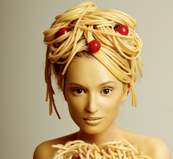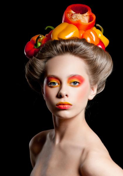 Na wesoło, smakowicie i bardzo atrakcyjnie prezentują się modelki w... tych fryzurach, a może raczej nakryciach głowy (i nie tylko) z produktów spożywczych :)
