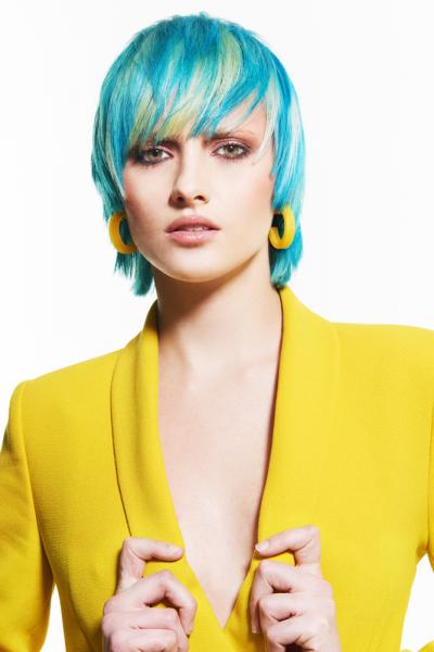 S. Burton, Safy B's, Aylesbury, fot. D. Greensmith, SUZI, FRK.03, kontrast symultaniczny, żółty, projektowanie fryzur